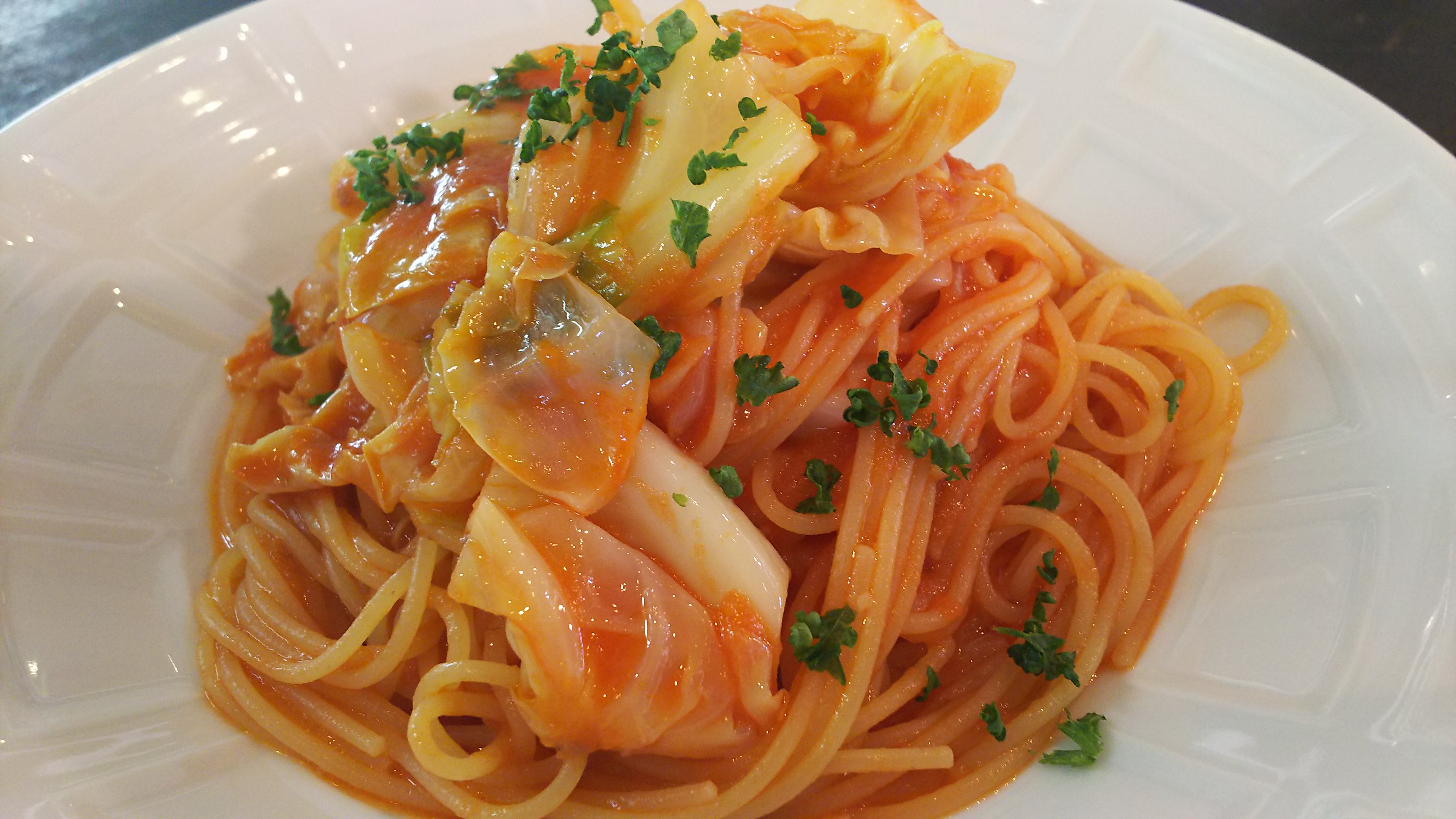 ・春キャベツとアンチョビのトマトソース